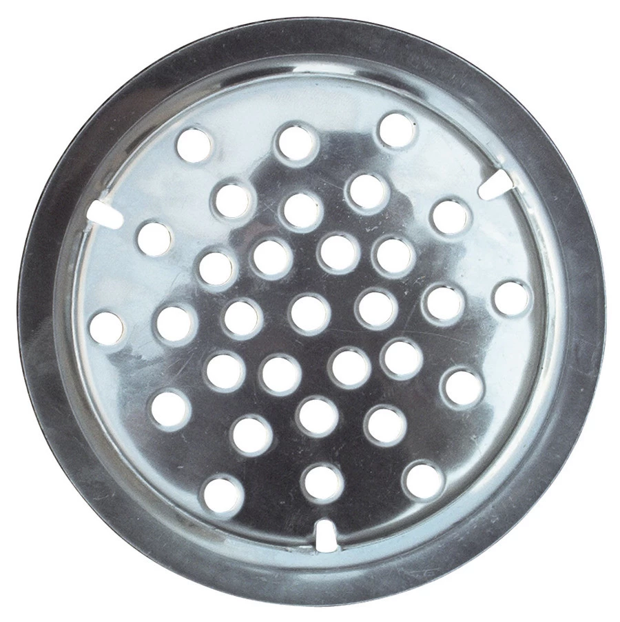 Roestvrij stalen grondrooster met diameter van 18 centimeter.