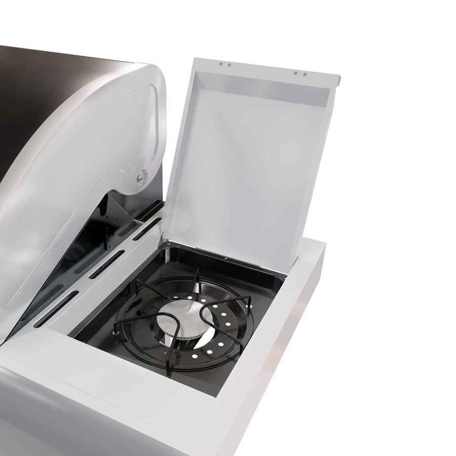 - Met zijbrander 2,9kW om sausjes op te warmen