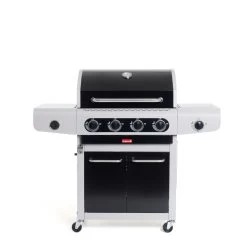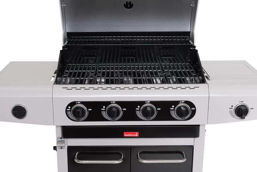 De Barbecook Siesta 412 gasbarbecue Black Edition heeft alles wat een barbecueliefhebber zich kan wensen. Gietijzeren grillroosters, een enorm kookoppervlak, krachtige branders en een royaal onderstel: alles voor een geslaagde barbecue.