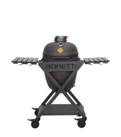 Maak kennis met de allereerste kamado barbecue van Boretti. Deze mooie kamado barbecue is gemaakt van keramiek, zoals alle andere kamado barbecues. Hierdoor beschikt de Boretti Ceramica M over uitstekende isolatie zodat je ook in de winter lekker kunt barbecueรซn. De ingebouwde thermometer in het deksel zorgt ervoor dat je altijd de temperatuur nauwkeurig kunt controleren. Je kunt de Ceramica M gebruiken om te gerechten te roken, braden en bakken. Dankzij het stevige onderstel verplaats je de Ceramica M zonder enig probleem. De twee zijtafels geven jou extra werkruimte en zijn gemakkelijk in- en uitklapbaar.