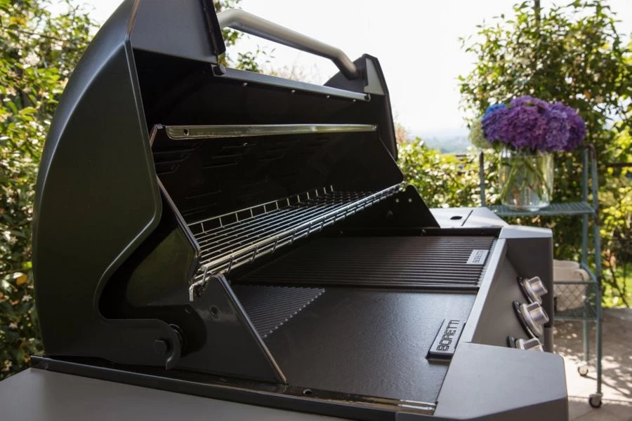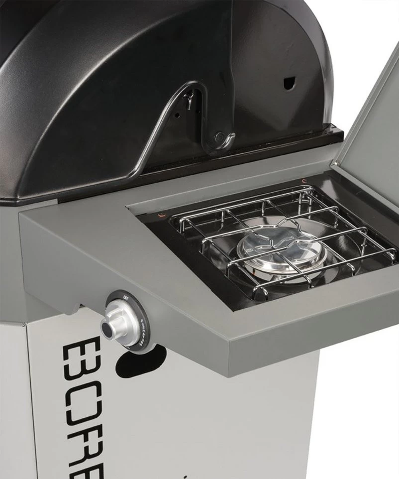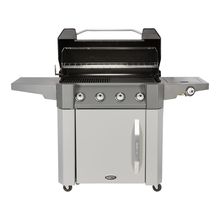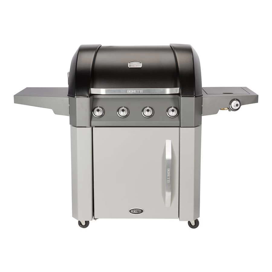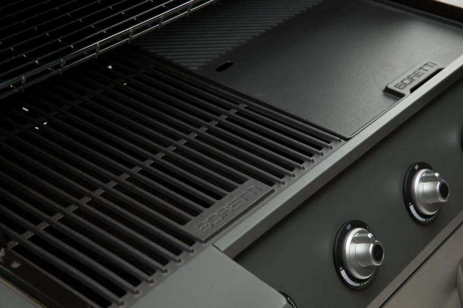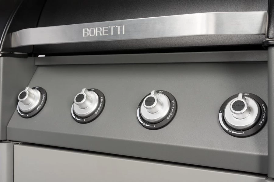 De Boretti Forza beschikt over vier hoofdbranders, een grillrooster en een bakplaat. Op deze gasbarbecue kunnen dus meerdere gerechten tegelijkertijd bereid worden. De infrarood zijbrander is er voor het klaar maken van bijvoorbeeld een sausje voor bij de vis. In het deksel zit een thermometer om bij te houden hoe warm de barbecue is. De gasfles kan onder de barbecue worden opgeborgen, zodat hij geen ruimte in de tuin of schuur inneemt.