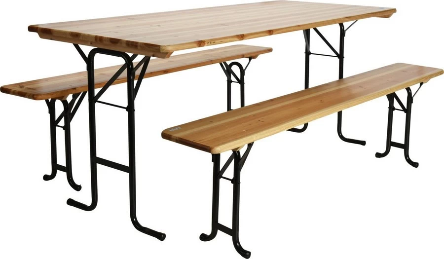 - Zowel tafel als bankjes zijn inklapbaar
