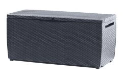 De kussenbox Capri van Keter met wickerdesign is uitermate geschikt voor je tuin. Dankzij het volume van 305l kan je met gemak je tuinkussens of andere tuinspullen opbergen in deze box. De box met modern rattan design is eenvoudig en zonder gereedschap in elkaar te zetten. De opbergbox is vervaardigd uit hoogwaardig kunststof waardoor hij niet zal gaan rotten of roesten en dus nauwelijks onderhoud nodig heeft. Bovendien is deze opbergbox weerbestendig.