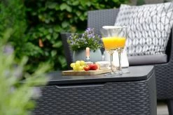 - De tafel met opbergruimte is handig om essentiรซle accessoires bij de hand te houden of de buitenruimte er netjes uit te laten zien.