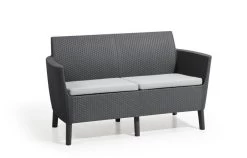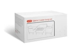 De ideale oplossing voor wie op zoek is naar een upgrade voor de look and feel van een buitenruimte. De Salemo tweezitsloungeset biedt comfortabel plaats aan vier personen en is geรฏnspireerd op Scandinavisch design. De set bestaat uit een tweezitsbank en een tafel met opbergruimte, gemaakt van duurzaam, weerbestendig kunststof in een stijlvolle wickerstructuur.