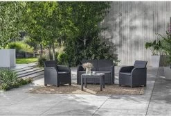 Zodra de zon weer in de tuin schijnt, wil je ervan kunnen genieten. Met de Rosalie loungeset van het merk Keter doe je dat volop. De set bestaat uit twee stoelen, een tweezitsbank en een tafel, die je in een mum van tijd in elkaar zet. De duurzame zitmeubelen met elegante wickerafwerking en stijlvolle afgeronde armleuningen zien er niet alleen mooi uit, maar zijn ook nog eens zeer comfortabel. De Rosalie loungeset wordt geleverd met luxe zitkussens. Hij is gemaakt van weerbestendig en duurzaam kunststof. Ze kunnen daarom het hele jaar buiten blijven staan.