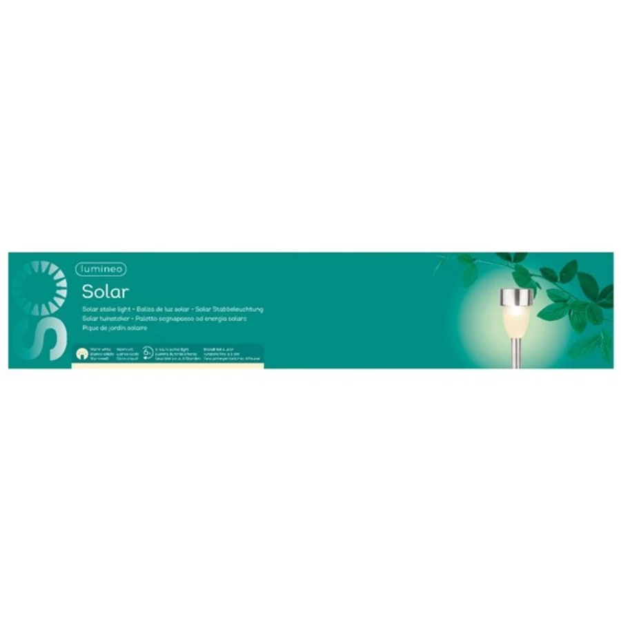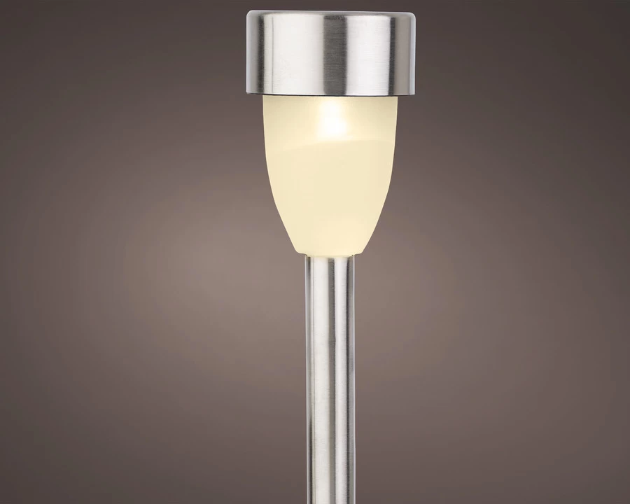 1x Buitenlamp/tuinlamp LED solar verlichting op zilveren steker/grondpin/grondpen, type Nova. Verlicht het tuinpad/looppad of licht een plantenborder uit met meerdere van deze lampen. Geen electriciteit nodig, werkt volledig op zonnepaneel boven op de lamp.