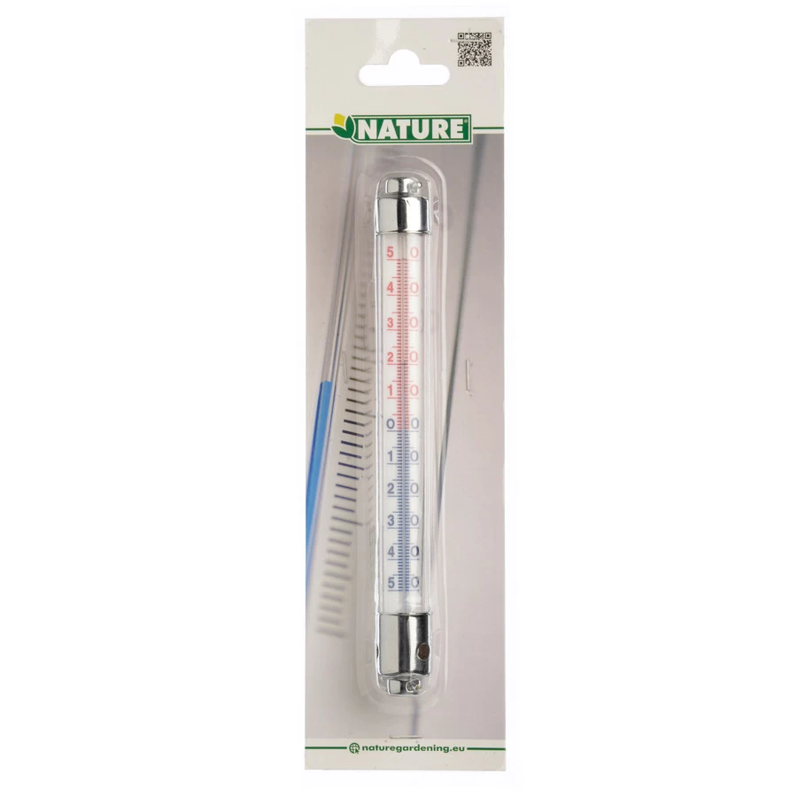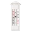 Metalen kozijnthermometer voor buitengebruik. U kunt deze thermometer buiten op het raamkozijn monteren en de binnen aflezen.