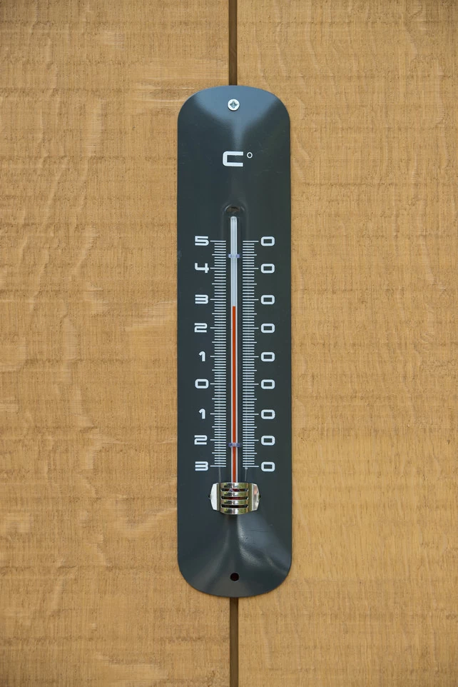 Buitenmuurthermometer van geëpoxeerd metaal.