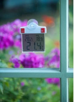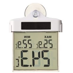 De digitale raamthermometer van Nature is ideaal voor het meten van de temperatuur offline buiten het raster. Deze thermometer kan gemakkelijk met een zuignap op een raam worden bevestigd, en hij laadt zichzelf op met zonne-energie. Dankzij de ingebouwde sensor meet hij de buitentemperatuur nauwkeurig. De thermometer is zichtbaar vanuit het huis en toont tegelijkertijd drie buitentemperatuurmetingen: de huidige temperatuur, de minimale en de maximale temperatuur, zoals vastgelegd sinds de laatste reset.