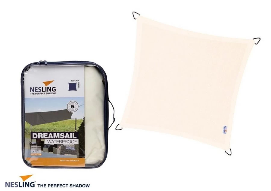 Waterdichte Dreamsail schaduwdoeken van Nesling voorzien in een fijne schaduwplek en bieden tot 95% bescherming tegen schadelijke UV-stralen. Met de waterdichte schaduwdoeken van Nesling kunt u met een lichte regenbui gewoon buiten blijven zitten. Zorg er dan wel voor dat het schaduwdoek 30 graden afloopt om voor een optimale afwatering te zorgen.