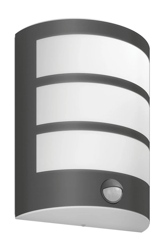 De antraciete Philips Python muurlamp geeft je huis een moderne uitstraling. Gebruik deze eigentijdse lantaarn om je entree te verlichten met diffuus, warmwit licht. In de lamp is een bewegingssensor ingebouwd, zodat het licht automatisch wordt ingeschakeld als er iemand in de buurt komt.