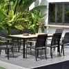 - tafel heeft een zwart aluminium frame met acacia hardhouten tafelblad