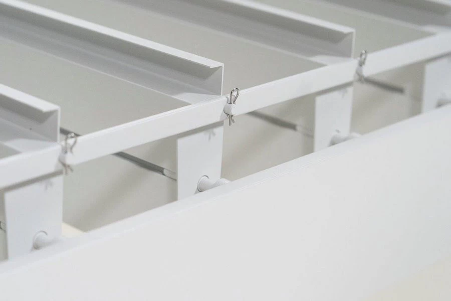 - Wanneer de lamellen gesloten zijn, is het dak volledig waterafstotend. Het water wordt direct gecontroleerd door het innovatieve geïntegreerde waterafvoersysteem in het platte dak.