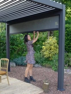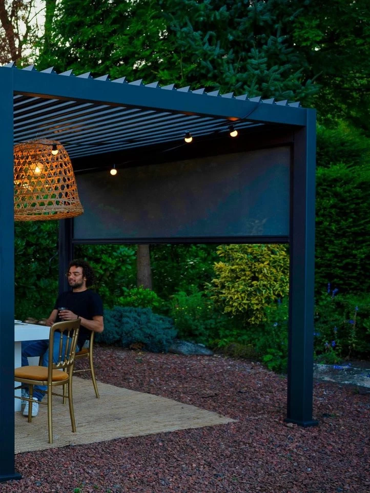 Met hetzelfde eigentijdse ontwerp is het scherm volledig geïntegreerd in uw Mirador Paviljoen. Het scherm kan ook achteraf worden gemonteerd. Dit is heel eenvoudig met behulp van de meegeleverde handleiding.