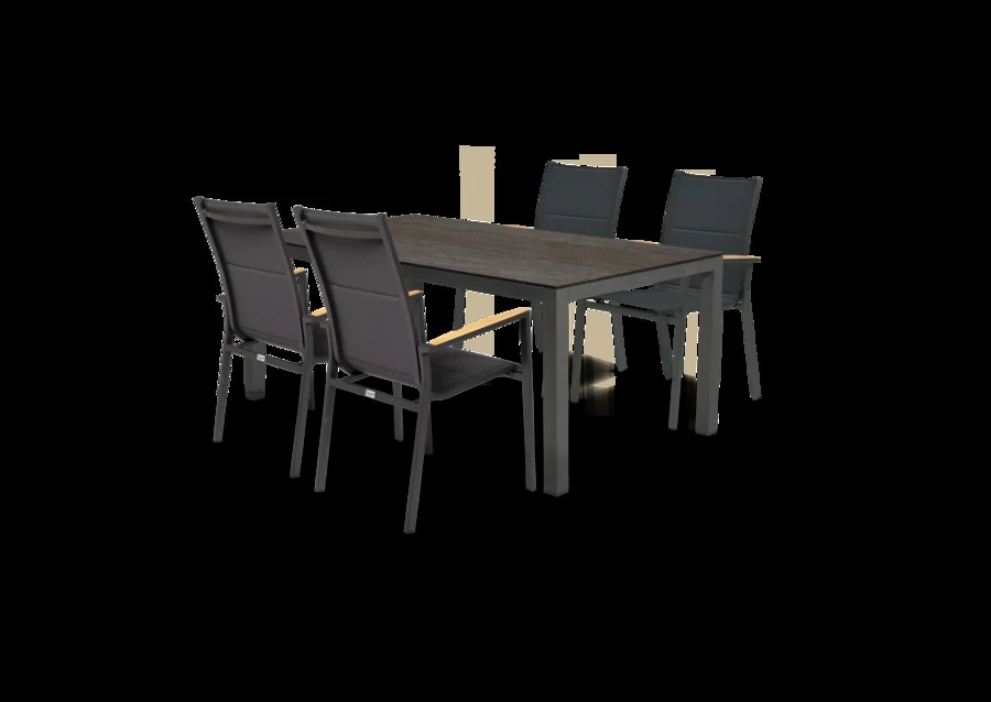 De Briga tuintafel van Tierra Outdoor. Deze lichtgewicht tafel uit de Tafel collectie bestaat uit een antraciet aluminium onderstel en is voorzien van een trespa tafelblad in de kleur Charcoal.