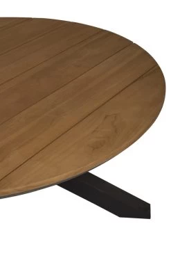 - De Orbital heeft een doorsnee van 120 cm en heeft een robuust onderstel van aluminium met een teakhouten blad.