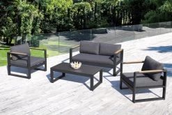 De royale tuinset Toulon met donkergrijs aluminium frame en teak armleggers maakt jouw tuin helemaal af.