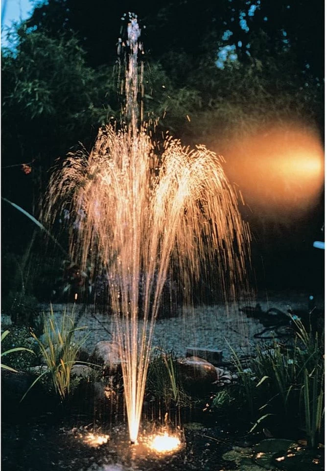 Een fontein in uw vijver zorgt voor zuurstof in het water en is bovendien decoratief. Om te kunnen genieten van de fontein is een juiste pomp nodig. De pomp moet krachtig genoeg zijn om het water omhoog te spuiten. Let daarom bij de aankoop op de opvoerhoogte van de pomp. Verschillende soorten sproeibeelden creëert u door de sproeikop te verwisselen.