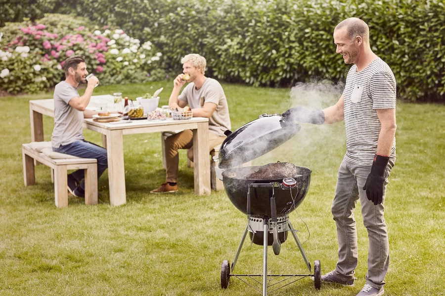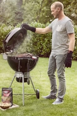 De legendarische Weber Kettle is opnieuw uitgevonden. Met de Master-Touch Premium houtskoolbarbecue kunt u een steak eerst perfect dichtschroeien. Vervolgens tovert u de barbecue eenvoudig om in een rookoven voor het langzaam roken van ribbetjes of een varkensschouder. De Master-Touch, met nieuwe functies, zoals een handig scharnierend deksel en houtskoolring voor efficiënt brandstofverbruik, is het antwoord op alles wat met barbecueën te maken heeft.